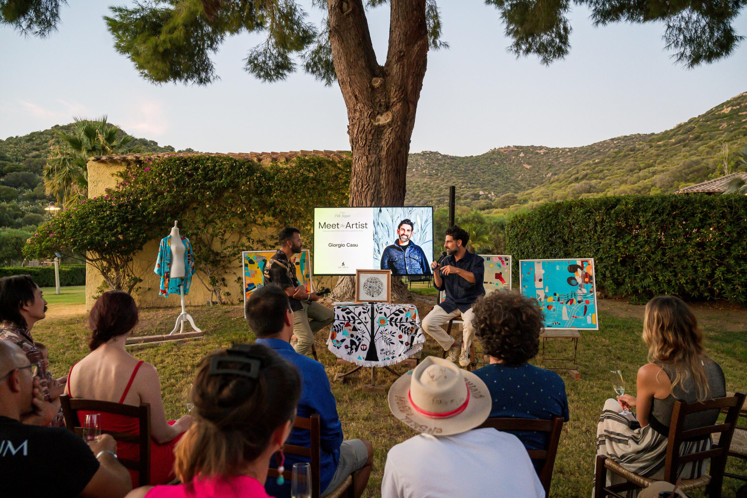 Venerdì 15 agosto, all’Aquarium di Torre Delle Stelle, si è tenuto un nuovo appuntamento con Meet the Artist, il ciclo di incontri dedicati a scoprire il lato umano e creativo degli artisti ospitati all’AQ Boutique. Protagonista della serata è stato Giorgio Casu, artista visivo nato a San Gavino Monreale ma con un percorso internazionale straordinario alle spalle.
