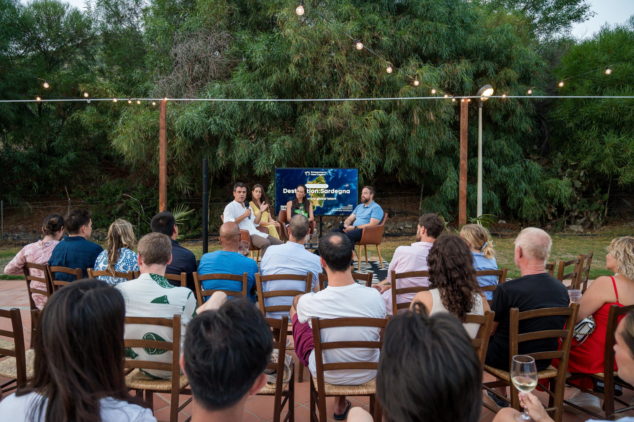 Moderato da Chris Verbick, l’incontro ha visto la partecipazione di tre protagonisti con background diversi ma uniti da un legame forte con la Sardegna: Nathalie De Clercq, imprenditrice e fondatrice di diversi progetti, oggi impegnata nella trasformazione di Torre Delle Stelle; Eva-Noelle Fassbender, fondatrice di “Italy Exit”, piattaforma di storytelling che racconta l’Italia e la Sardegna in chiave contemporanea; Michele Collu, avvocato con esperienza nella Silicon Valley, oggi di ritorno in Sardegna per investire in nuove imprese.